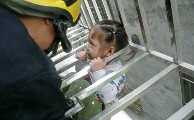 واستدعيت فرق الإنقاذ لاستخراج الطفلة بعد أن سمع صوت بكائها أحد المارين قرب البناية السكنية، حيث شاهد الطفلة تتدلى من بين القضبان وتبكي، فسارع لطلب النجدة، التي نجحت في استخراج الطفلة من خلال توسعة الفتحة.