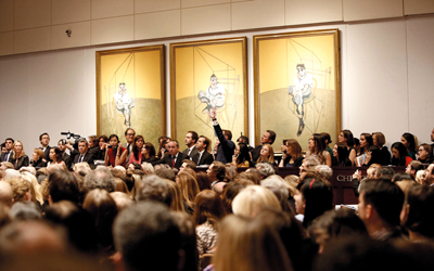 أصبحت لوحة «ثلاثية لوشيان فرويد» للرسام فرانسيس بيكون أغلى عمل فني يباع على الإطلاق في مزاد، إذ جلبت 142.4 مليون دولار، في مزاد اقامته دار كريستيز في نيويورك أول من أمس.
