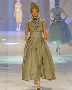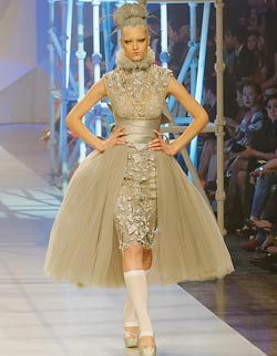 اعتمد المصمم أيضا فكرة الكورسيهات ذات القوالب ذات الأرداف الضخمة على شكل أقفاص، تختفي أسفل التنانير المنفوشة من التور، والتي أعطت تأثيرا فكتوريا دراماتيكيا واضحا على الفساتين، كما فضل أن يعتمد هذه الفكرة بطريقة أكثير فانتازية كاشفا عن نصفها في بعض الفساتين مزينا إياها بالخامات والورود والتطريزات، لتبدو العارضة بنصف ردف بارز وآخر طبيعي، مقدما لهذا الموسم واحدة من أهم وأفضل مجموعاته، والتي جمعت بعناية بصمات المصمم والدار ولكن بلمسة أكثر احترافية متقنة.