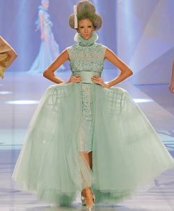 على منصة دار أزياء أماتو كوتور، تتحول العارضات دائما إلى مخلوقات أخرى أقرب إلى الخيالية، يحولها مصمم الدار فرن أونيه إلى نسخته الفانتازية للمرأة، التي تزدان بكثير من الابتكار والقليل جدا من الهدوء، الأمر الذي لم يختلف في عرض المجموعة الأخيرة للدار حيث تحولت المجموعة خلال أقل من 20 دقيقة إلى حكاية تدور أحداثها في عالم ملون مستوحى من مزيجه الخاص من إمبراطورة فرنسا الأشهر ماري أنطوانيت وفتيات الغيشا اليابانيات وكل ما بين الاثنتين من تناقض وتشابه.