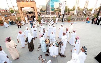العروض الإماراتية التراثية تقام بالقرب من القرية الثقافية بالقرية. من المصدر