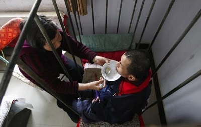 قررت أم صينية أن تحبس ابنها في قفص حديدي منذ أكثر من 40 عاماً، خوفاً عليه بعد اصابته بخلل في المخ.