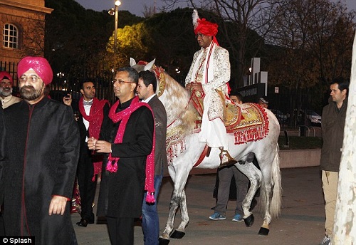 وحضر 500 شخص حفل الزفاف الذي سجل رقماً قياسياً من حيث الترف والبذخ، فيما تم استيراد جيش من الخدم والطهاة قوامه 200 شخص من كل من الهند وتايلاند لتقديم الخدمات اللازمة لحفل الزفاف الذي أقيم في إسبانيا.