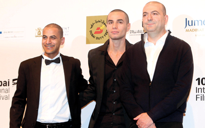 مخرج «عمر» (يمين) وبطل الفيلم آدم بكري. أرشيفية