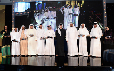 ماجد بن محمد يتوسط المكرمين. من المصدر