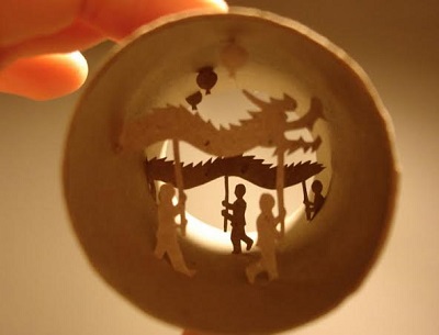 قامت فنانة فرنسية بتصميم أعمالاً فنية من خلال استخدامها أورق التواليت والأنابيب الورقية المتبقية منها.