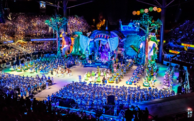 وتقدم الفرق المشاركة في هذا المهرجان أسطورة الثعبان الضخم أناكوندا، إذ يقوم الكاهن بانتزاع حاسة البصر وقوة هذا الثعبان لتوفير الحماية للسكان، لكن هذه الأعمال قد تجلب معها خطر الطوفان الكبير. وبطبيعة الحال تكثر مشاهد الرقص ذات الألوان المشرقة والزاهية، التي تظهر بها الأسماك والصيادون والقوارب بمختلف أشكالها وأحجامها. وبعد خمس ساعات تقريباً من الرقص والغناء وصلت الاحتفالات إلى نهايتها، ولم يدرك الكثير من المتفرجين أي الفريقين نال نقاطاً أكثر، من فرط الإجهاد التي تعرضت له الحواس المختلفة، خصوصاً إذا لم يعثر المتفرج على مقعد ليستريح عليه خلال هذه العروض الاحتفالية.