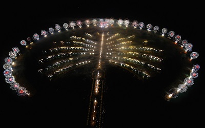 - نخلة جميرا ومدينة جميرا: تقدم هذه المنطقة فرصة نادرة لمتابعة العروض، ويتطلب هذا الإسراع لتأمين حجز في فندق أومطعم على جزيرة النخلة أومدينة جميرا أو على طول الخط الساحلي في منطقة الجميرا أومرسى دبي، مع أفضلية أن تكون في الصفوف الأولى لمشاهدة تحطيم دبي للأرقام العالمية في أجمل وأكبر عروض للألعاب الضوئية والنارية عالمياً، والتي تصل إلى نحو 450 ألف لعبة نارية سيتم عرضها على مدى 6 دقائق على نخلة جميرا وجزر العالم.