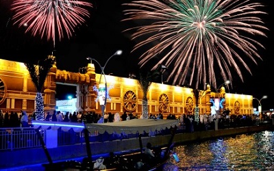 تحتفل القرية العالمية بالعام الجديد في أجواء عائلية فريدة وعروض ترفيهية وثقافية دون توقف حتى الساعة الثانية صباحاً.