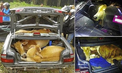بالصور.. أبقار مسروقة في سيارة صغيرة
