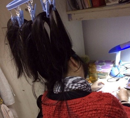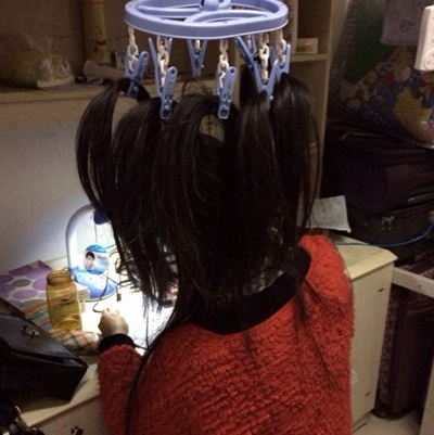 حيث قامت الطالبتان بنشر صور لطريقتهما الجديدة، والتي تقوم على أساس ربط الشعر وتعليقه بمشابك الغسيل في مكان مرتفع، بحيث يمنع الفتات من الغرق في النوم والاستلقاء على سطح المكتب.