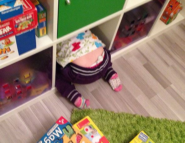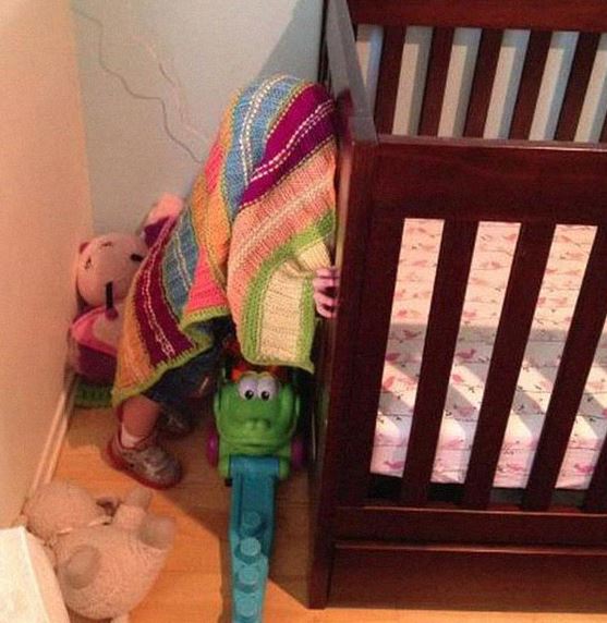 ودائما ما يلتقط الأهل صورا لمثل هذه المواقف الطريفة، لكن ألطفها يكون عندما يعتقد الأطفال أنهم يختبؤون وأن لا أحد يراهم. حينها فقط تكون الصور مثالا "للذكاء" الخاص الذي يمتلكه كل طفل على حدى.