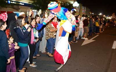 جال كرنفال المهرجان، خلال أيام عطلة نهاية الأسبوع، شارع الرقة، ناشراً الفرح والمرح بين الجميع من خلال المئات من العارضين الذين ارتدوا أزياء ملونة، تعكس الأجواء الاحتفالية لمهرجان دبي للتسوق.