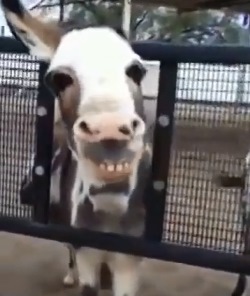 ويسمع في المقطع صوت طفل يقول للحمار "Smile" فيفاجأ الطفل بأن الحمار يستجيب لطلبه رافعاً رأسه وراسماً ابتسامة كبيرة لهذا الطفل، لكن الطفل ظن في البداية أنها صدفة بحتة إلى أن أعاد الكرة مرات عديدة فلاحظ الاستجابة نفسها من قبل الحمار وكأنه يدرك تماماً معنى الكلمة.