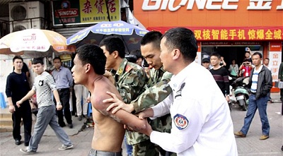 ألقت الشرطة الصينية القبض على عامل بناء أخذ حبيبته رهينة لرفض أهلها زوجهما، بعد أن قام بخلع ملابسه وحمل ساطوراً، في محاولة يائسة منه لإثارة فضيحة تدفع أهلها لقبوله.