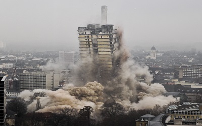 بالصور.. هدم برج جامعة طوله 116 متراً
