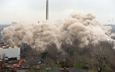وقد خطط لهذا الحدث، الخبير في مجال هدم المباني، إدوارد ريش، الذي وضع الفريق الذي يعمل معه ما يقرب من نصف طن من المتفجرات داخل المبنى، الذي تحول إلى 50 ألف طن من الركام الخرساني.