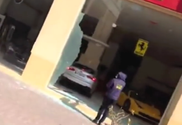 تداولت مواقع تواصل إجتماعي، مقطع فيديو يظهر فيه سائق مركبة من طراز "كيا سيراتو"، يقتحم معرض سيارات فارهة فيراراي و مازاراتي.