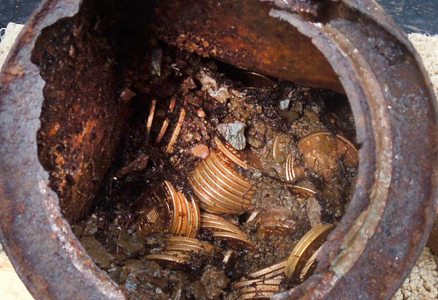وأضافت ان الاثنين سحبا الجرة ليتبين أن في داخلها علباً تحتوي على قطع من الذهب تعود إلى القرن الـ19.