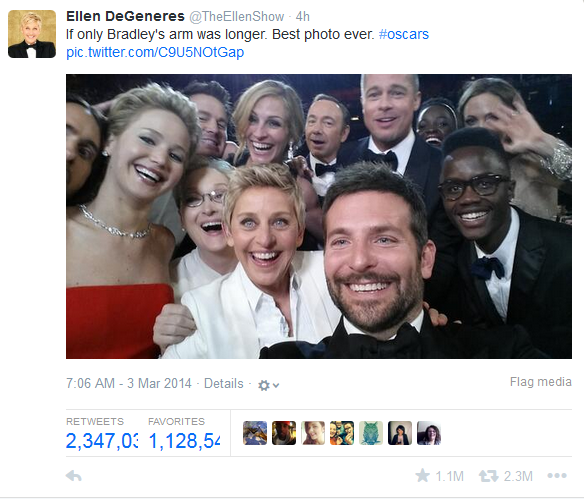 صورة الأوسكار لـ"إلين ديجينيريس" تحقق أعلى إعادة نشر على تويتر