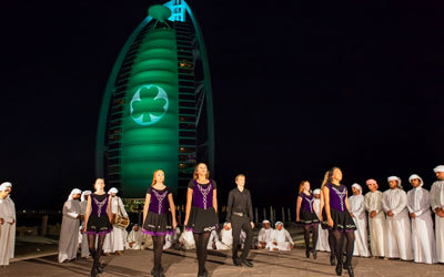 نظمت هيئة السياحة الأيرلندية أول رقصة إماراتية ــ أيرلندية من نوعها أمام فندق برج العرب، وذلك كجزء من فعاليات تحويل برج العرب الى اللون الأخضر السنوية. وقدم 30 راقصاً مع طلاب مدرسة فيكتوريا الدولية في الشارقة رقصة العيالة الإماراتية الشهيرة، في حين قام طلاب مدرسة سيبوهان كيلاليا في دبي بتقديم الرقصة الأيرلندية التقليدية، وأبهرت الرقصة المزدوجة الحشود من الجماهير التي اندمجت مع أنغام عازفي الطبول الإماراتيين ونقرات أحذية الراقصين الأيرلنديين.