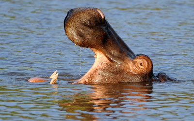 وعلى بُعد أمتار قليلة من مدخل الحديقة، اضطر قائد سيارة اسلفاري إلى التوقف فجأة وأشار إلى الطريق، ما استدعى البعض إلى التساؤل، هل ظهر وحيد القرن الأول، فأجاب الشخص الجالس في الأمام قائلاً: «لا، لكنها خنفساء الروث التي تظهر على الطريق وهي تكافح من أجل دفع كرات الروث عبر الطريق»، وعندئذ حمل السياح العدسات المقربة للاستمتاع بهذا المشهد الطبيعي النادر. لكن الحيوانات الأكبر حجماً ظهرت بسرعة في المشهد، حيث شاهد السياح خنزيراً يعبر الطريق، وكان هناك ضبع يتسلل في الأدغال من حول السياح، وبالطبع لم يخلُ المشهد من ظهور أحد الخمسة الكبار، حيث ظهر وحيد القرن وهو يهرول حول حفرة المياه، ولم ينزعج من استقرار بعض الطيور على ظهره. وفي السابق كان يطلق اسم الخمسة الكبار على الحيوانات كبيرة الحجم والمفترسة، ألا وهي الفيل ووحيد القرن والجاموس الوحشي والفهد والأسد.