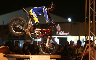 ويتميز العرض بالحماسة الشديدة، وسيقدم العارضان استعراضات ومناورات متتالية منذ اللحظة الأولى لبداية العرض، في حلبة تم تصميمها خصيصاً للعرض، وتضم مجموعة من جذوع الأشجار والإطارات الضخمة، ويقوم العارضان بالعبور عليها والقفز بالدرجات النارية من مكان لآخر باستعراضات محترفة وحركات مبهرة.