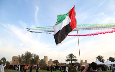 من فعاليات مهرجان العين 2014 الترفيهي في حديقة الجاهلي بمدينة العين، التي تعبّر عن تقدير أبناء الوطن لجهود صاحب السمو الشيخ خليفة بن زايد آل نهيان، رئيس الدولة، وما يقدمه للدولة، بمن فيها من مواطنين ومقيمين.