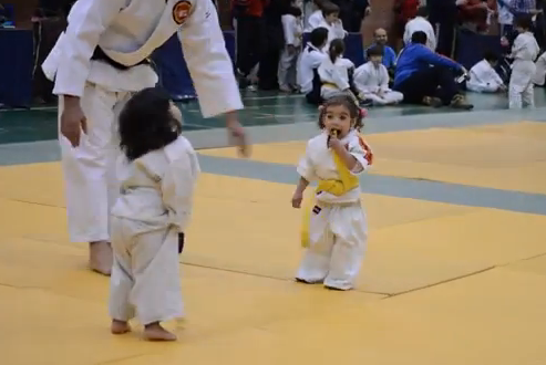 نشر على موقع يوتيوب مقطع فيديو لمتباريتين صغيرتين في اللعبة القتالية "الجودو" وهما تتباريان لتفوزا باللقب لفئة الأطفال.