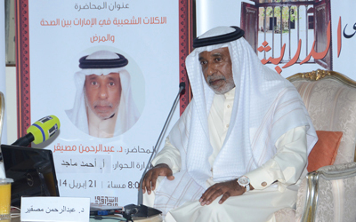 أمسيتان تراثيتان سلطتا الضوء على الأكلات الشعبية في الخليج العربي والألفاظ الإماراتية القديمة، تواصلاً لفعاليات مقهى الدريشة الثقافي، الذي تنظمه إدارة الشؤون الثقافية في دائرة الثقافة والإعلام بالشارقة، التي تأتي ضمن فعاليات أيام الشارقة التراثية في دورتها الـ12. الأمسية الأولى قدمها الباحث البحريني الدكتور عبدالرحمن مصيقر، رئيس المركز العربي للتغذية، وأدارها الإعلامي أحمد ماجد، وتناولت المأكولات الشعبية في الخليج العربي بين الصحة والمرض، أما الأمسية الثانية فتطرقت إلى الألفاظ الشعبية الأصيلة في الإمارات، قدمها يوسف أحمد الأصلي، وأدارها الإعلامي عبدالله الحمادي، تطرقت إلى اللهجة والألفاظ والمفردات الشعبية القديمة في الواقع الشبابي، من خلال عرضها في وسائل الاتصال الحديثة والتفاعل معها.