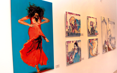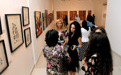 وشاركت في المعرض الذي يقام للمرة الثالثة 25 فنانة من الوطن العربي والهند وباكستان وغيرها من البلدان. وقد تنوعت أعمالهن بين التشكيل والخط العربي، مع غياب الأعمال النحتية أو التركيبية، الأمر الذي يؤكد افتقار الساحة الفنية إلى وجود فنانات يولين اهتماماً للكتلة في العمل الفني. حمل المعرض الأجواء النسائية من خلال الوجوه الأنثوية التي سيطرت على الأعمال، التي كان الفن التشخيصي هو المسيطر على معظمها، إذ طغت الأجساد والوجوه على المساحات اللونية، فكانت راقصة تارة، ومثقلة بالحزن طوراً، إضافة الى بعض اللوحات التي حملت الجانب الطفولي. في المقابل، كانت هناك مجموعة من اللوحات التي تحمل رسائل اجتماعية، ومنها التي تعالج نظرة المجتمع إلى المرأة المطلقة، كعمل الفنانة وفاء الحسيني، أو الجانب الأنثوي عند المرأة، وتعاطيها مع شكلها ومظهرها وعائلتها، كما في أعمال أحلام عباس. في المقابل، أظهرت الفنانة ليز راموس برادو، العالم الأنثوي من خلال الوجوه النسائية وسط الزهور وأوراق الشجر على الخشب، فكان عملها لافتاً لجهة الجو الحالم الذي يقدمه. أما لوحات الخط، فحملت مجموعة من النصوص الدينية التي أخذت أشكالا كلاسيكية، فكتبت النصوص على شكل السفينة، أو حتى بشكل دائري يحمل الكثير من الزخرفة على هوامش النص. وقد شاركت أكثر من خطاطة في المعرض، جمعتهن المحافظة على كلاسيكية لوحة الخط، لجهة الأسلوب في عرض النص.
