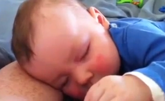 في هذا المقطع يظهر طفل رضيع وهو يضحك بعمق أثناء نومه.