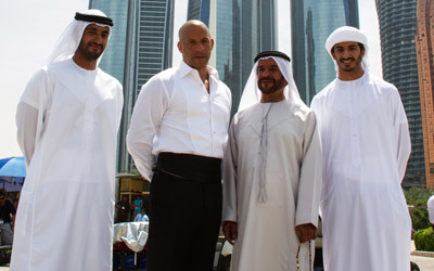 سرور بن محمد آل نهيان وأبناؤه مع فين ديزل في أبوظبي. من المصدر