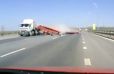 في مقطع فيديو تداولته مواقع التواصل الاجتماعي للحظة سقوط حمولة من الدعامات الحديدية من على ظهر شاحنة على طريق سريع في أحد المدن الروسية. وتم تسجيل وقوع الحادث من خلال كاميرا مثبتة على الواجهة الأمامية لإحدى السيارات التي كانت تسير في الطريق المقابل.
