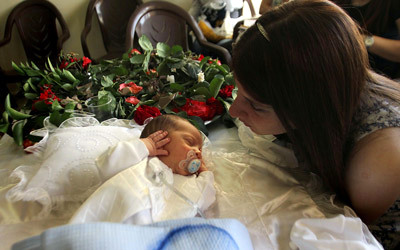 أما جدة «معتز» لأمه واسمها «راحيل»، فكانت الفرحة تبدو واضحة بعينها وهي تقف لاستقبال الضيوف، وتقول لـ«الأناضول»: «هذا يوم سعيد جداً، رزقني الله بأربع بنات ولم يرزقني بأولاد ذكور، وبناتي أنجبن أطفالاً وسموهم على اسم زوجي معتز».