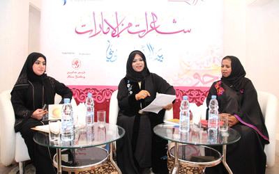 المبدعات الثلاث خلال أمسية «شاعرات من الإمارات». من المصدر