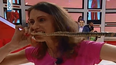 فاجأت احدى ضيفات برنامج "أحمر بالخط العريض" الذي يبث على شاشة الـ "ال بي سي"، الجمهور، بأكلها رأس أفعى على الهواء، في الحلقة التي حملت عنوان "إخت رجال".