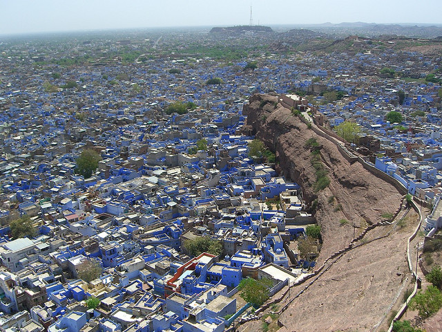 تعد غودبور ثاني أكبر مدينة في ولاية راجاستان في الهند، يطلق عليها اسم المدينة الزرقاء حيث غالبية المباني والمنازل فيها مطلية باللون الأزرق النيلي. لم يعرف سبب اختيار هذا الطلاء وتعميمه على أرجاء المدينة، ولكن البعض يقول إن ذلك مرتبط بالنظام الطبقي في الهند. فيما يعتقد البعض الآخر أن المدينة اكتسبت ألوانها في البداية من البراهمة وهي طبقة الكهنوت أو رجال الدين الذين يحاولون إبراز مكانتهم المرموقة في المجتمع الهندي من خلال طلاء منازلهم باللون الأزرق. ولكن الاعتقاد العلمي السائد على نطاق واسع هو أن اللون الأزرق النيلي كان يضاف إلى الدهان الجيري الأبيض المستخدم في طلاء المنازل لتبريدها ولحمايتها من البعوض والنمل وغيره من الحشرات الأخرى.