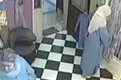 وبينما دخلت احداهن وهي أصغرهن عمراً إلى غرفة تبديل الملابس، حتى بدأت الأثنتان بسرقة ثوب من "فاترينة" العرض.