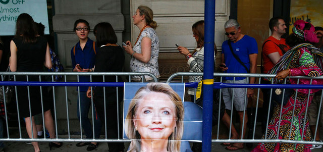 اصطف مئات الأشخاص في طوابير أمام إحدى المكتبات، أمس، في مدينة نيويورك للحصول على نسخ موقعة من المذكرات الجديدة للسيدة الأولى السابقة هيلاري كلينتون التي أطلقت عليها اسم «الخيارات الصعبة»، والتي يمكن أن تجلب ملايين الدولارات لوزيرة الخارجية السابقة.