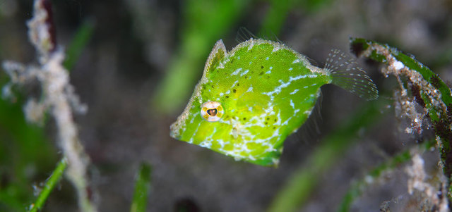 ما يأخذ المتعة البصرية في الصور البحرية إلى آخر حدودها هو فنّ تمويه المخلوقات البحرية نفسها، وقدرتها على محاكاة محيطها المعيشي بأفضل ما لديها من قوة للتمويه، وذلك لأنها تتموه لسببين: الأول الابتعاد عن أنظار المهاجمين، والسبب الثاني هو الصيد. صورة لسمكة الملف من منطقة أنيلاو بالفلبين.