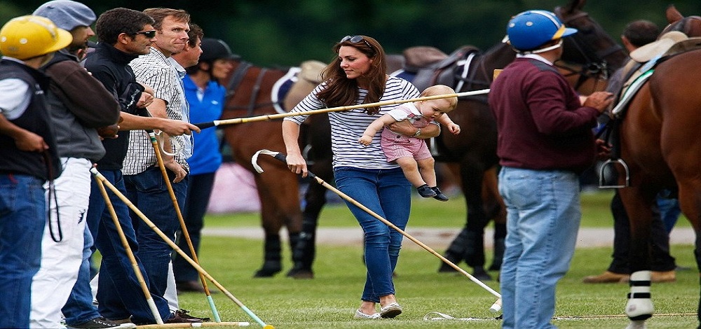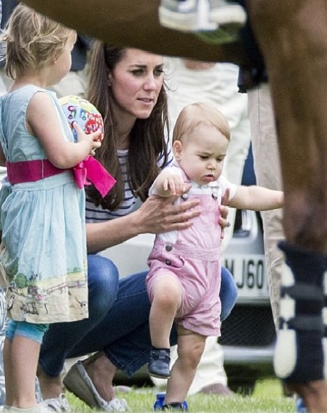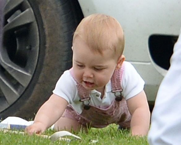استطاع الأمير "جورج " الإفلات من بين يدي والدته، دوقة كامبردج "كيت ميدلتون"، والزحف على الأرض صوب الكرة، عندما كان يتابع والده وهو يشارك في مسابقة خيرية بلعبة البولو.