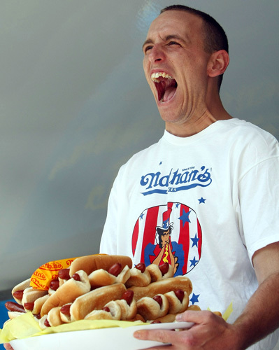 حافظ رجل أميركي، من ولاية كاليفورنيا، على لقبه كأكبر ملتهم لشطائر النقانق، في سباق سنوي أقيم في نيويورك بمناسبة العيد الوطني الأميركي.