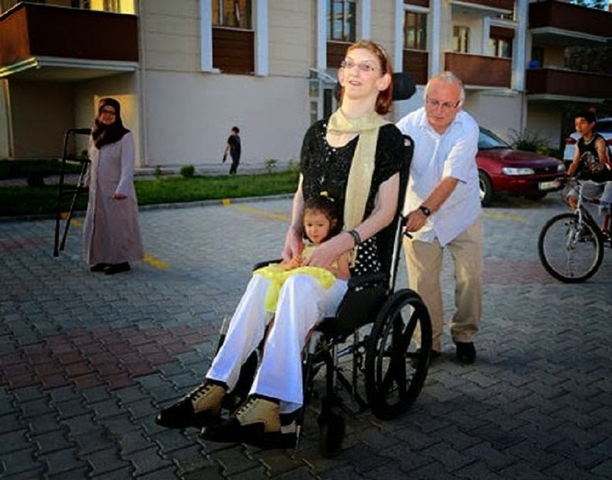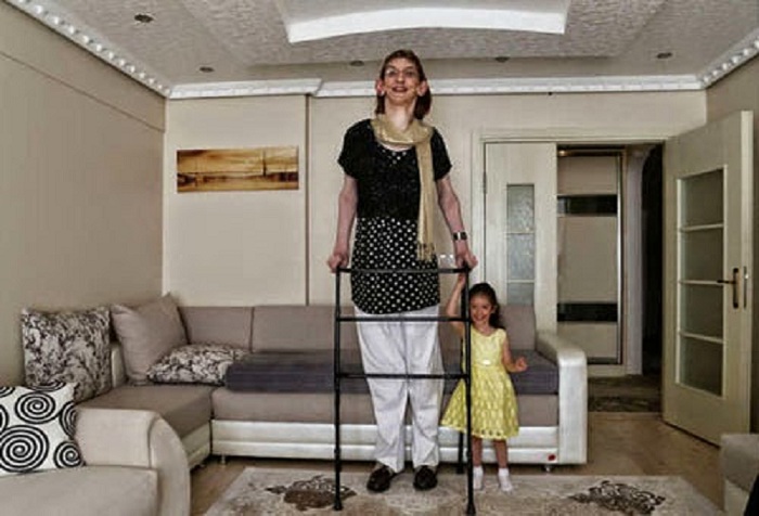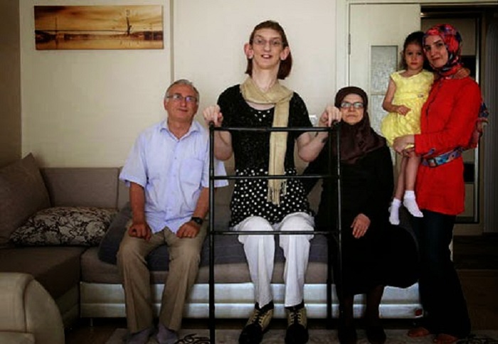 تعاني التركية رميسا جيلجي 17 عاماً من اضطراب وراثي نادر يجعل جسمها ينمو بسرعة أكبر من المعتاد، حتى بلغ طولها حالياً 213 سنتيمتراً غير أن هذا المرض أدخلها موسوعة "غينيس" للأرقام القياسية بلقب "أطول امرأة في العالم".