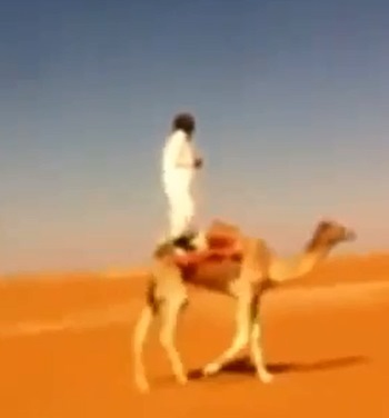بالفيديو.. يسقط من فوق ناقته تحت عجلات سيارة صديقه