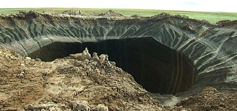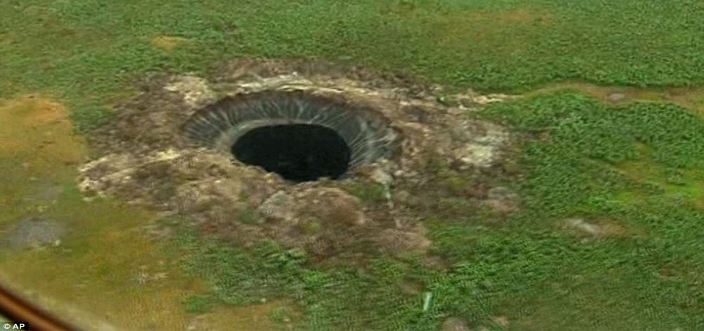 ظهرت فجأة، فتحة عملاقة بسطح الكرة الأرضية في روسيا بمنطقة غنية بالغاز تقع شمال سيبيريا.
