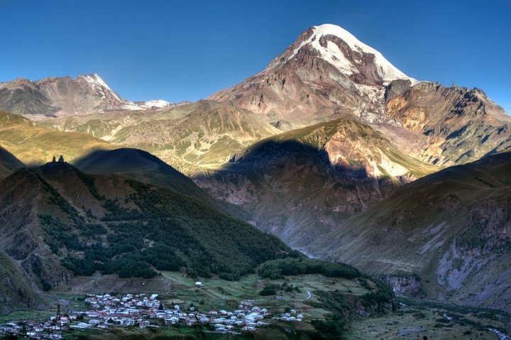 أما قرية خازبيغي التي شمال جورجيا، على بعد 10 كيلو متر من الحدود الروسية وعلى إرتفاع 1,740 متراً عن سطح البحر، فتتميز بموقعها الخلاب الذي يطل على جبال القوقاز ومساحات خضراء شاسعة، بالإضافة إلى مناخها المعتدل الذي يسمح لزوارها الإستمتاع بجمال المنطقة الجبلية الخلابة في أي يوم من أيام السنة والقيام بأنشطة مختلفة كتسلق الجبال وركوب الخيل والتنزه وزيارة الأماكن الأثرية وغيرها.