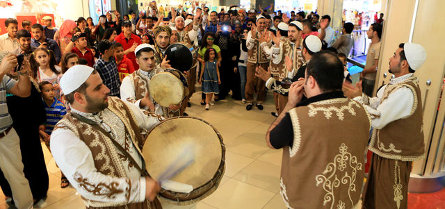 دفوف وإيقاعات فرح بالعيد، تنشر البهجة في أرجاء «ميغا مول» بالشارقة، وترسم الابتسامة على وجوه الصغار والكبار من كل الجنسيات التي تقيم على أرض إمارات الخير.