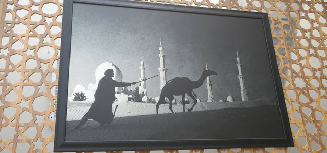 صوفية كانت أعمال الفنان الأسترالي، بيتر غولد، متوجهة إلى نوع من الصوفية، يتجلى في شكل الدرويش الذي كان يتراقص على وقع حروف الكلمات التي اتت على شكل جسده، فتبدو أنها ذات روحانية عالية. ويتجلى في أعماله مزيج ثقافي يحمل من إرثه الحضاري، وكذلك من المكتسب الإسلامي الذي حصّله من خلال أسفاره في الشرق الأوسط، لذا تبدو لوحاته حالة خاصة من محاولة ربط الثقافة الغربية بالعربية. تصوير تميزت أعمال المصور البريطاني، جورج لويس، بكونه شديدة التعبير عن البيئة المحلية. قد لا تحمل الملامح الإسلامية بشكل بارز ومباشر، إلا أن لويس يلتقط مشاهده في محطات تجعل المشهد العام الذي يصوره يتشكل أمام الناظر، وكأنه نوع من مخاطبة الفنان للنظم والقيم الإنسانية السائدة في البلد. وكان من أبرز الأعمال في المعرض صورة مسجد الرجل الذي يسير خلف الجمل، وفي خلفية الصورة مسجد الشيخ زايد، بينما تظهر الصحراء في الصورة بشكل متميز في وقت الغروب. |