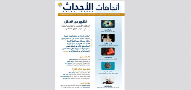ومن الافتتاحية إلى «دراسة المستقبل» التي تفاجئ القارئ المتوقف عند حدود حروب الجبل الرابع، بأنه ثمة جيل جديد، أكثر حداثة وضراوة، ينشد نشر «دوامة العنف» عبر حروب الجيل الخامس، التي «تستهدف المجتمع، وتقوم على استغلال التناقضات الموجودة في بنيته، وأوجه الضعف القائمة فيه، لإثارة سخط الشعب، ومن ثم تهديد كيان الدولة من داخلها بما ينذر بإمكانية تفجرها أو إضعافها في أقل الأحوال»، حسب رئيس التحرير التنفيذي لـ«اتجاهات الأحداث»، شادي عبدالوهاب.